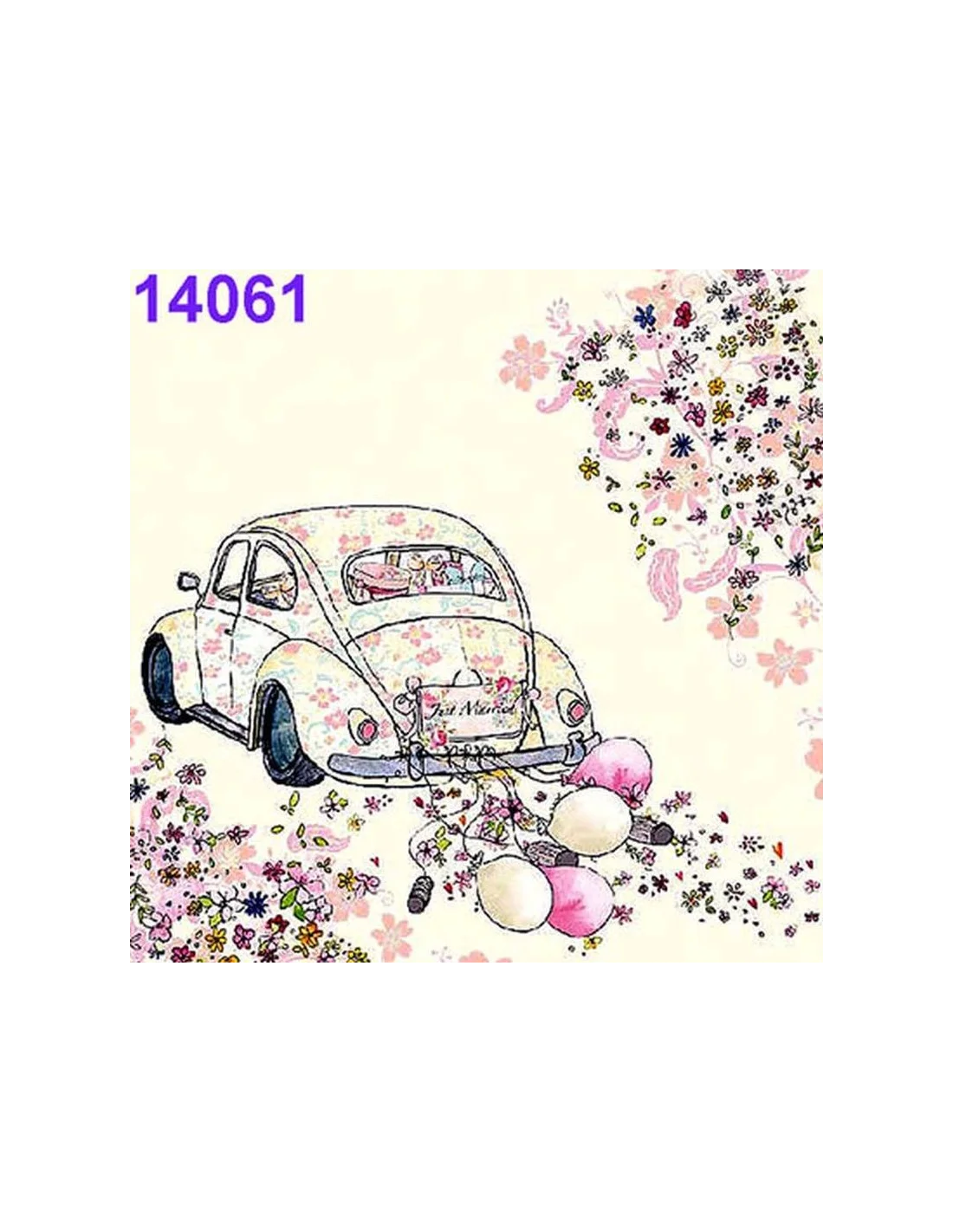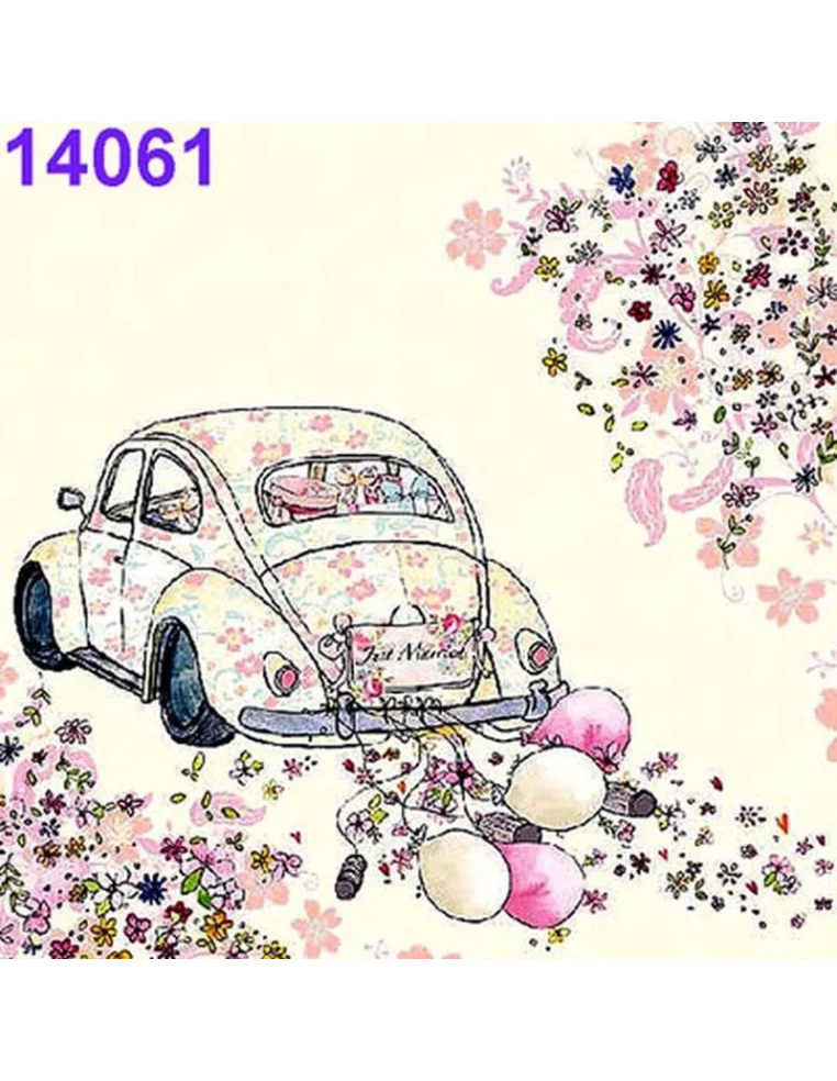 Servilletas Decoupage Recién Casados Ambiente 33x33 cm 20 Uds. Diseño festivo con recién casados para proyectos nupciales y celebraciones. Servilletas de alta calidad para decoupage en madera, cristal y cerámica. Crea piezas únicas con un toque romántico y un acabado profesional que celebra el amor y la felicidad en cada creación.