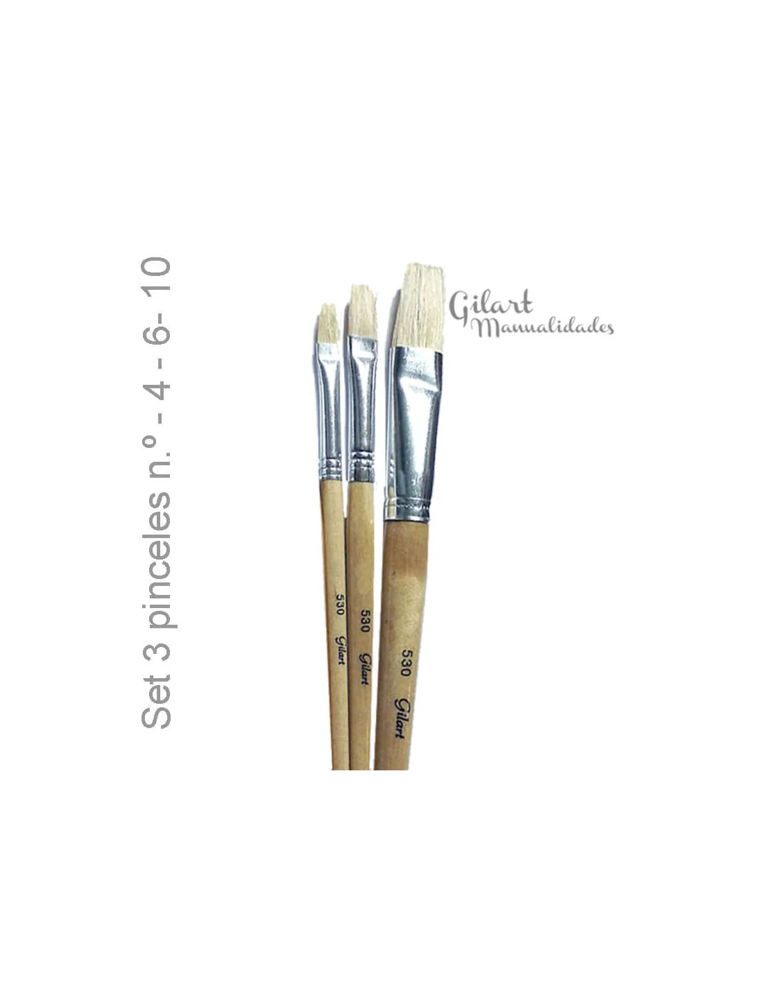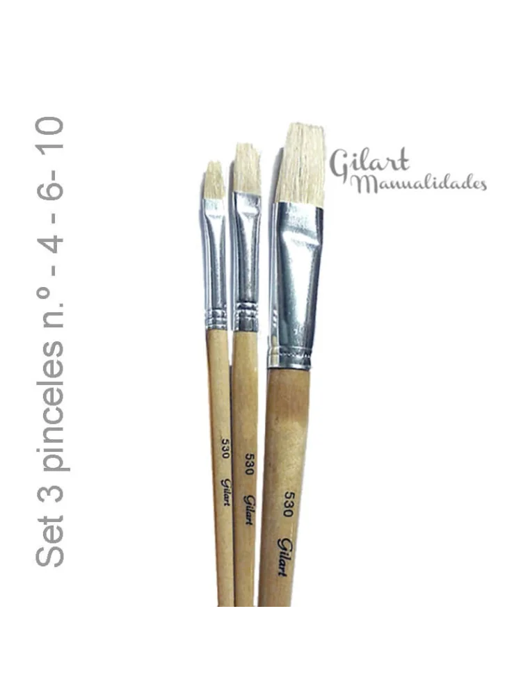 Pinceles Planos Cerda Set x3 para Óleo y Acrílico | Gilart Bellas Artes (n.º 4, 6, 10)