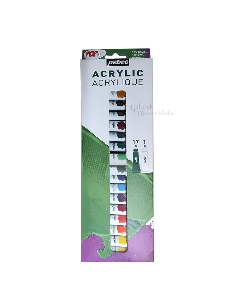 Set de Pintura Acrílica Pébéo Pop Art - 18 Tubos (17x10ml + 1x15ml)