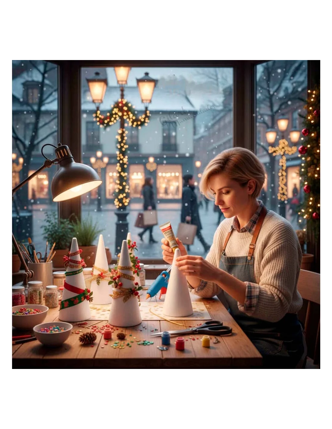Gracias a su superficie lisa de poro cerrado, este cono es excelente para el decoupage con servilletas, el forrado con telas texturizadas o la aplicación de pintura acrílica de alta cobertura. Al ser un material de baja absorción, permite lograr acabados uniformes y profesionales sin un gasto excesivo de pintura o imprimación. Es especialmente utilizado para la creación de árboles de Navidad de gran formato personalizado, centros de mesa elegantes para eventos y bodas, soportes para expositores de producto en tiendas (retail) y decoraciones temáticas que requieren piezas ligeras pero con gran presencia visual.