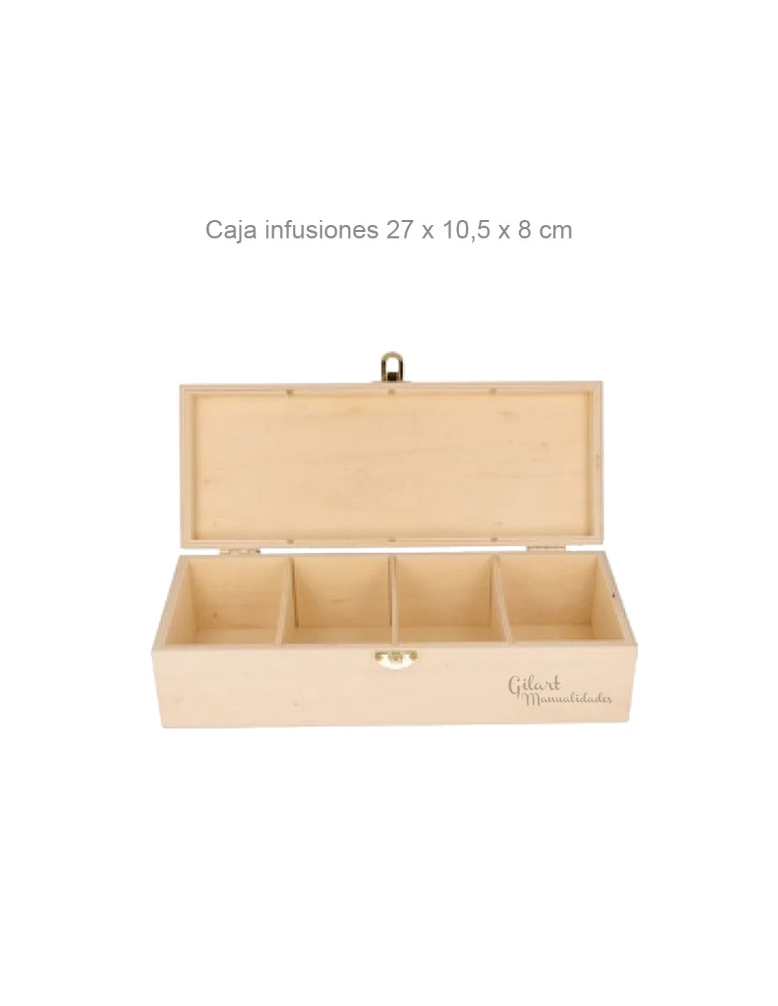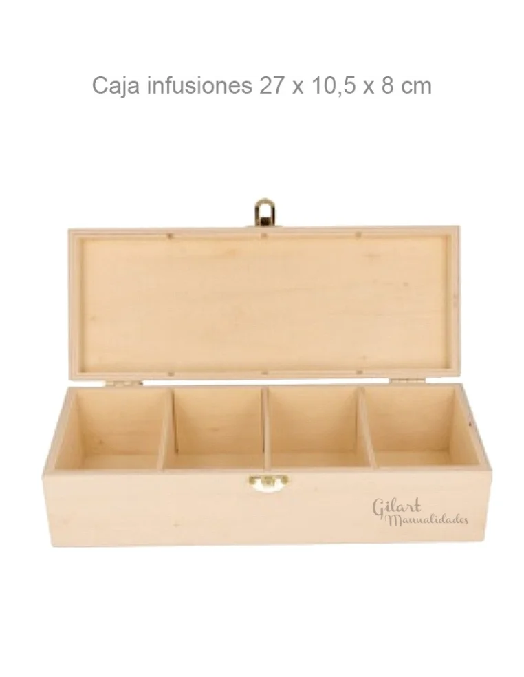 Caja de madera natural para infusiones y manualidades 27 x 10.5 x 8 cm