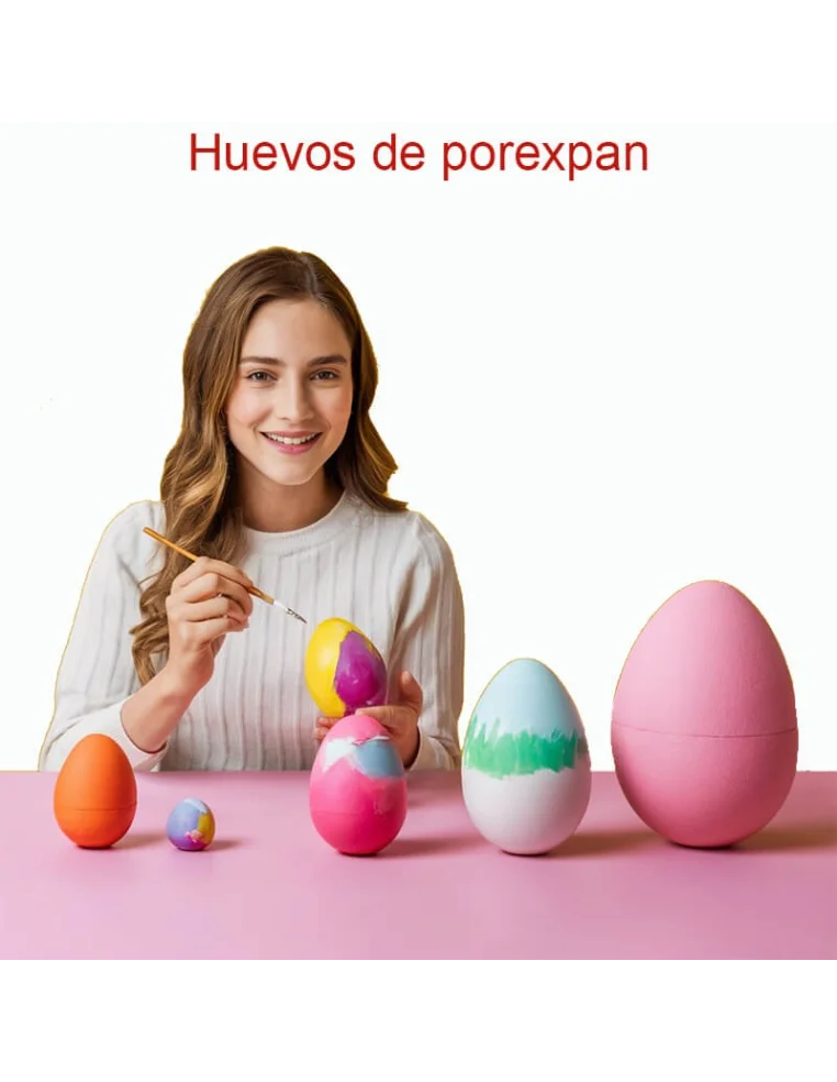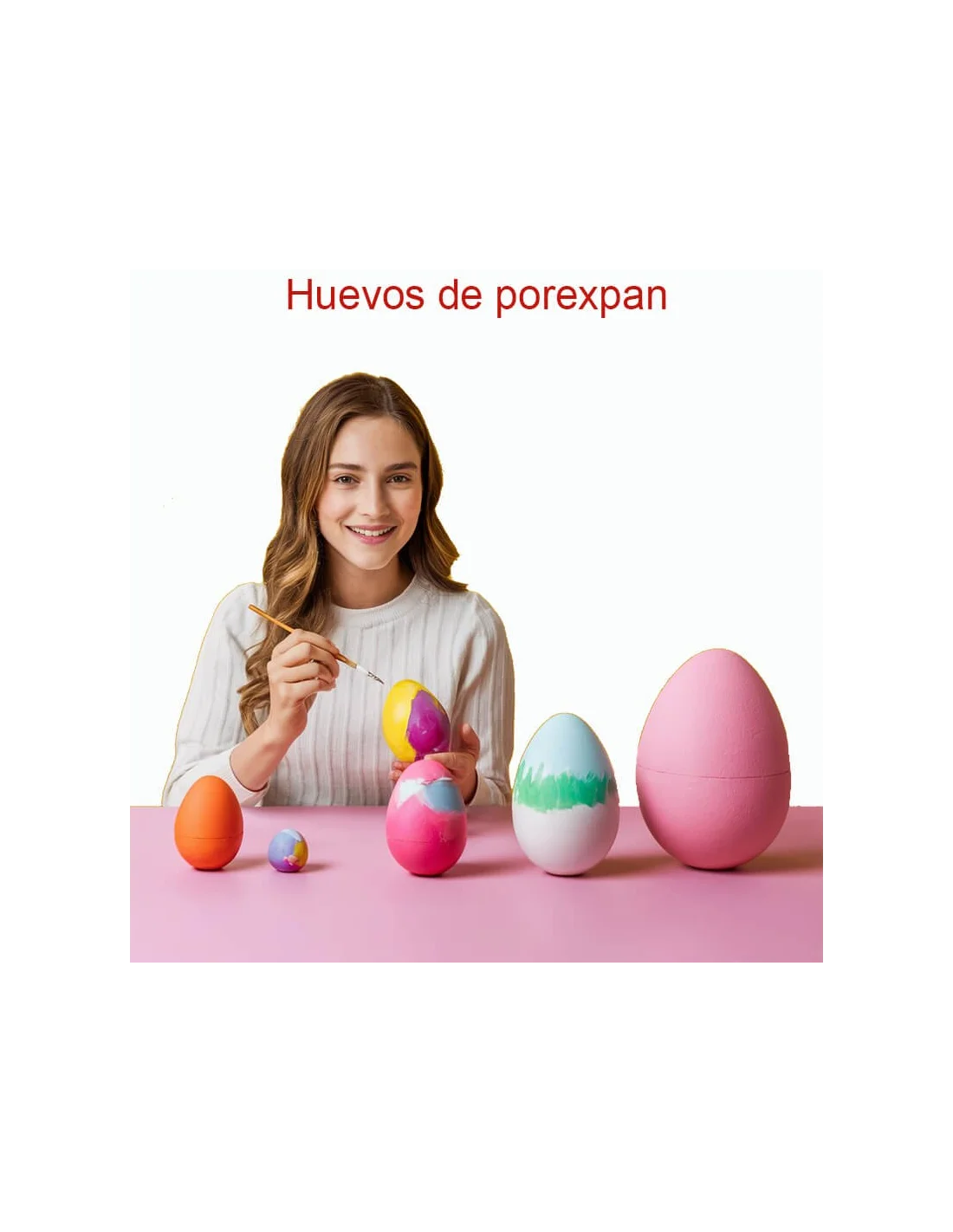 Huevos de poliestireno de alta densidad para manualidades. Superficie lisa y resistente, ideal para pintar, decorar y crear adornos de Pascua, figuras y proyectos creativos con acabados profesionales.