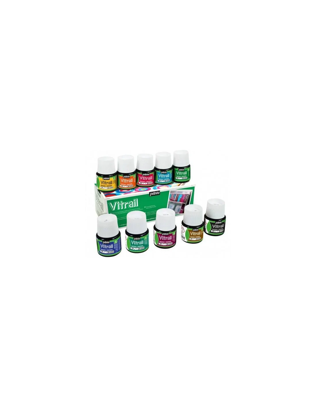 Set 10 Pinturas para Vidrio Pebeo Vitrail Solvente 45 ml