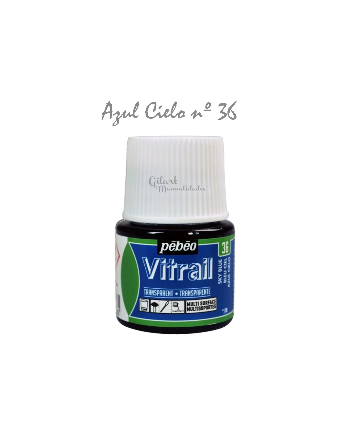 Pintura Vitrail Pebeo Azul Cielo (N°36). Color transparente para tus manualidades. ¡Crea vidrio!