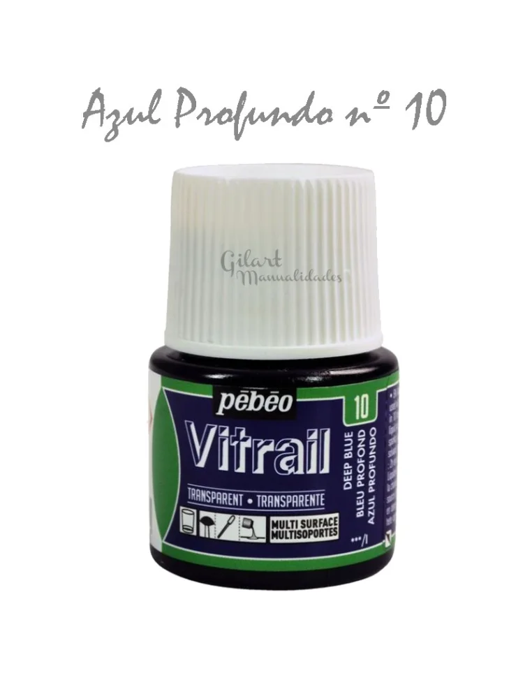 Pintura Vitrail Pebeo en gama completa para efectos de vitral con un acabado transparente, intenso y muy brillante sobre vidrio, acetato y poliéster. Esta línea de manualidades y bellas artes es esencial para crear luz y color. Descubre todos los tonos disponibles y haz tu compra hoy.