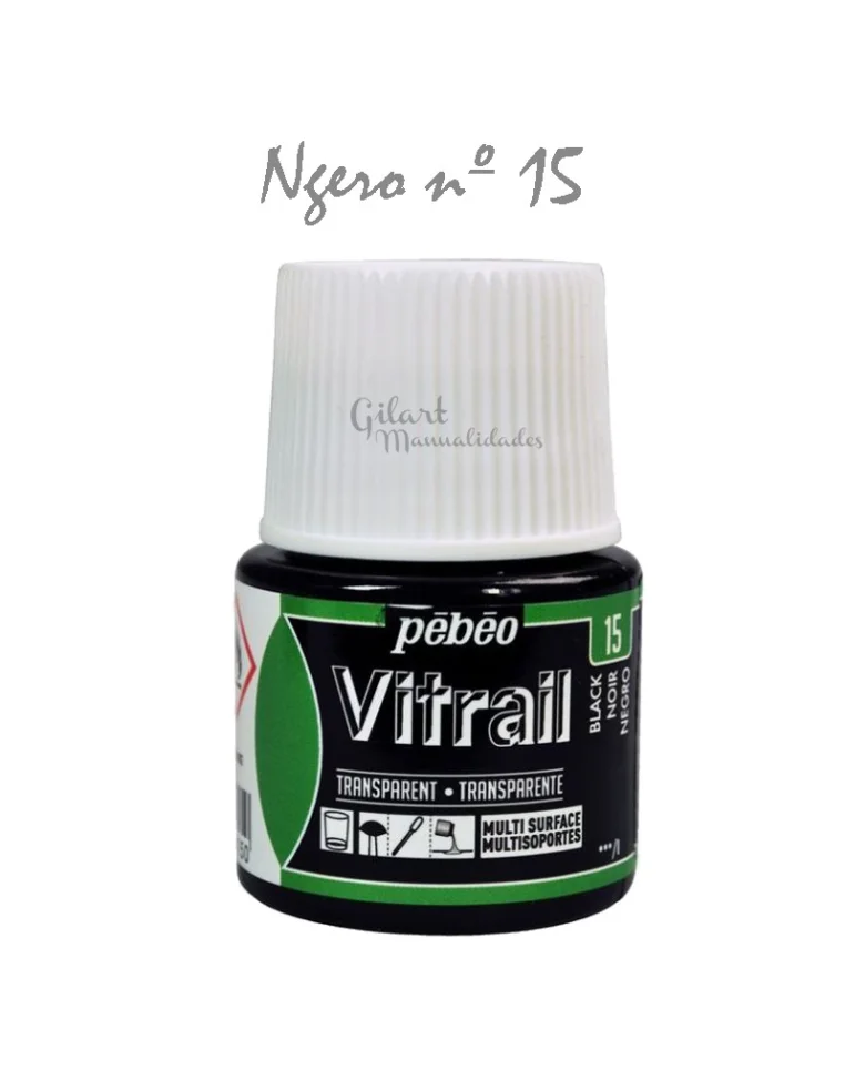 Pintura Vitrail Pebeo Negro (N.º 15). Color transparente para tus manualidades. ¡Crea vidrio!